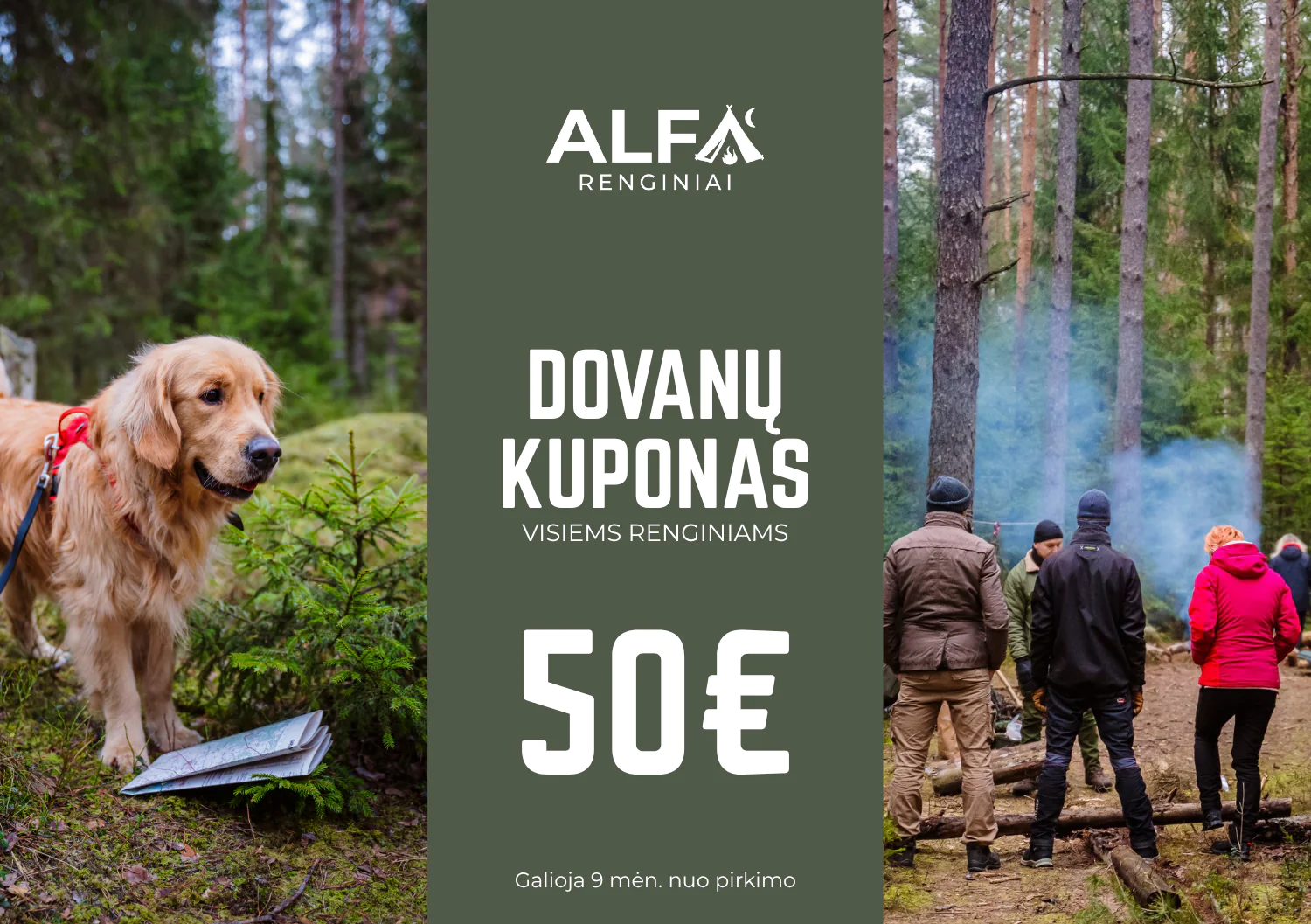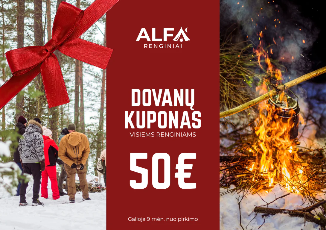 Ieškai dovanos, kuri paliktų įspūdį ilgiau nei bet kuris daiktas? Šis „Alfa Renginiai“ dovanų kuponas – tai bilietas į nuotykius, gamtos iššūkius ir naujus potyrius!